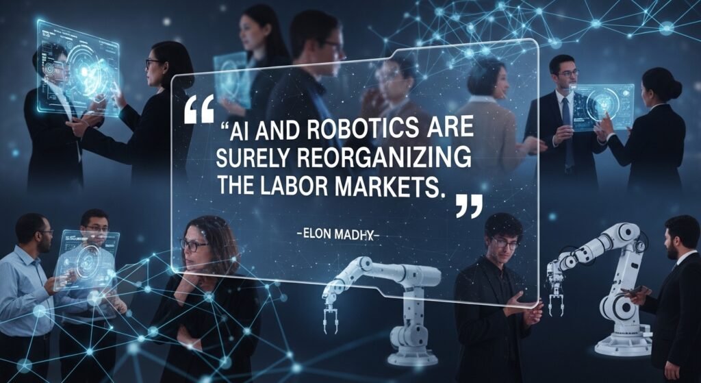 Be it that work is turned completely optional or merely automated, AI and robotics are surely reorganizing the labor markets. This quote by Musk is representative of a larger discussion of the manner in which humanity copes with the changing of the intelligence and productivity no longer being distinctly human privileges.