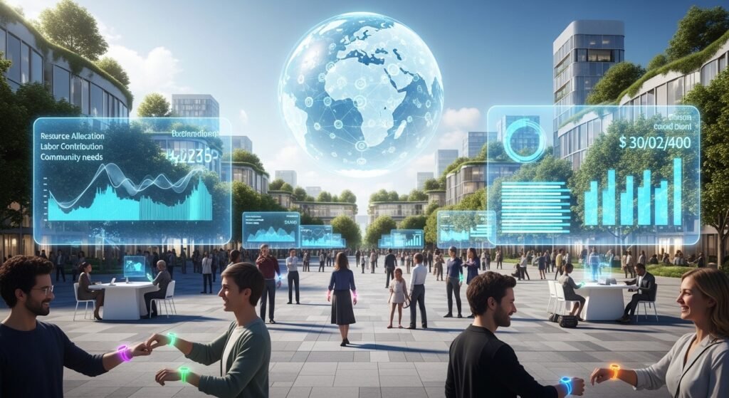 The association would have to redesign economic structures in case money becomes irrelevant. Markets are dependent on labor, purchasing power and wages. To replace such a structure would require worldwide coordination and policy development.