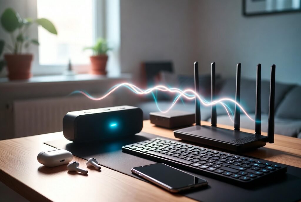 Wireless earbuds, speakers and keyboards are operated with Bluetooth signals. This is what happens with these signals which occupy the space with Wi-Fi frequencies. Congestion will be high when more than many Bluetooth devices are in operation. It causes the decreased speed and latency.