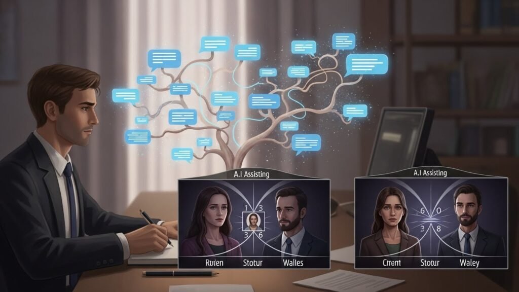 Story driven games rely on branching dialogue and choice consequences. A.I. assists writers by proposing alternate plot paths based on character traits and prior decisions. These suggestions serve as drafts. Writers refine tone and intent, ensuring narrative coherence and emotional weight remains under human direction.