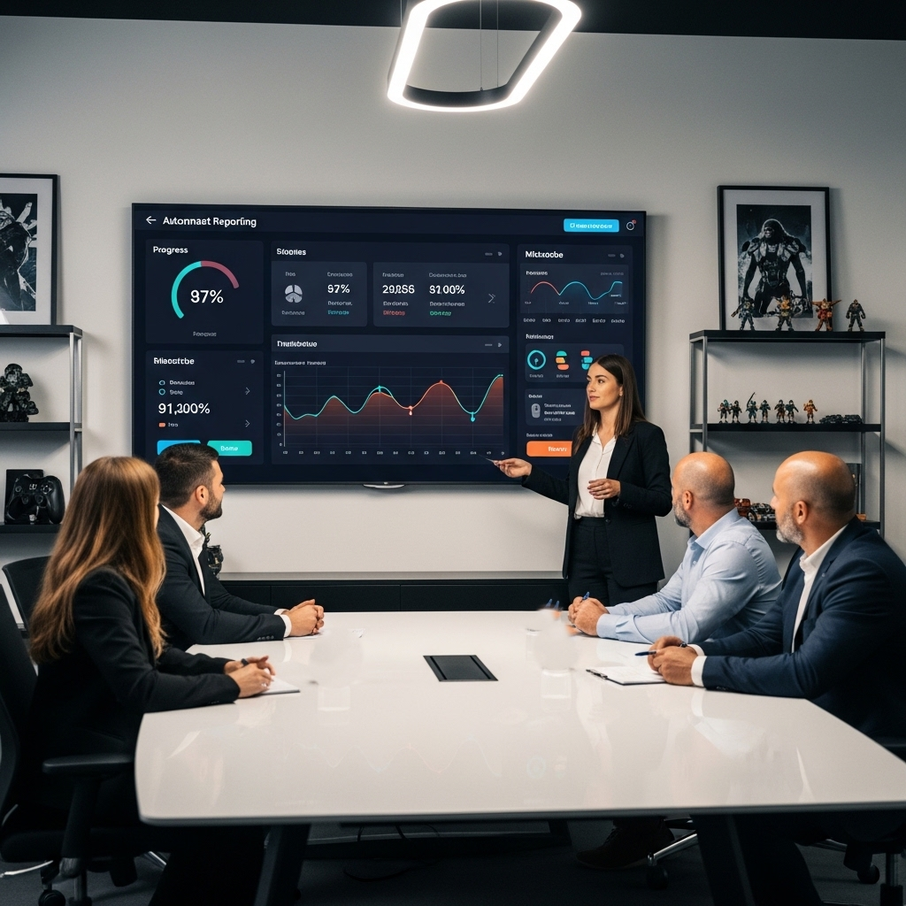 Automated reports summarize progress, risks, and milestone status. Producers share updates with studio leadership or publishers using clear metrics. Less time goes into manual slide preparation. Decisions rely on current project data.