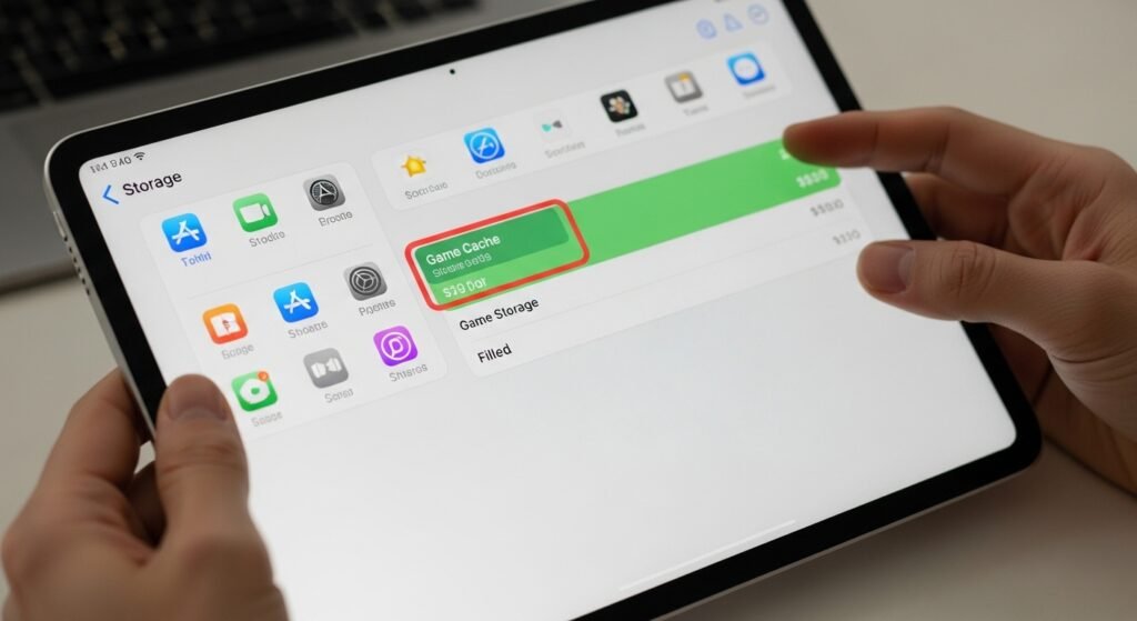 Storage review identifies which apps consume space. Open Settings, select General, then iPad Storage. Games with large cached data appear near the top. Storage review guides priority and prevents unnecessary removals. This step supports targeted cleanup and preserves progress files linked to game accounts.