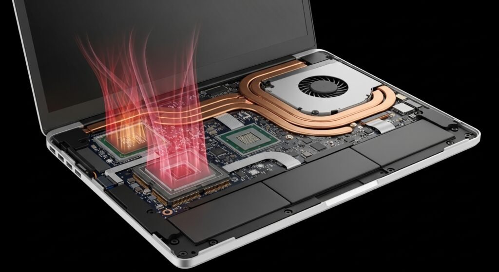 The M5 series uses an advanced manufacturing method which enables it to fit billions of transistors into the same physical area. The laptop achieves a significant boost in processing capabilities through this technology without need for additional physical space. The system delivers improved performance because it keeps the device at a lower temperature during demanding operations.