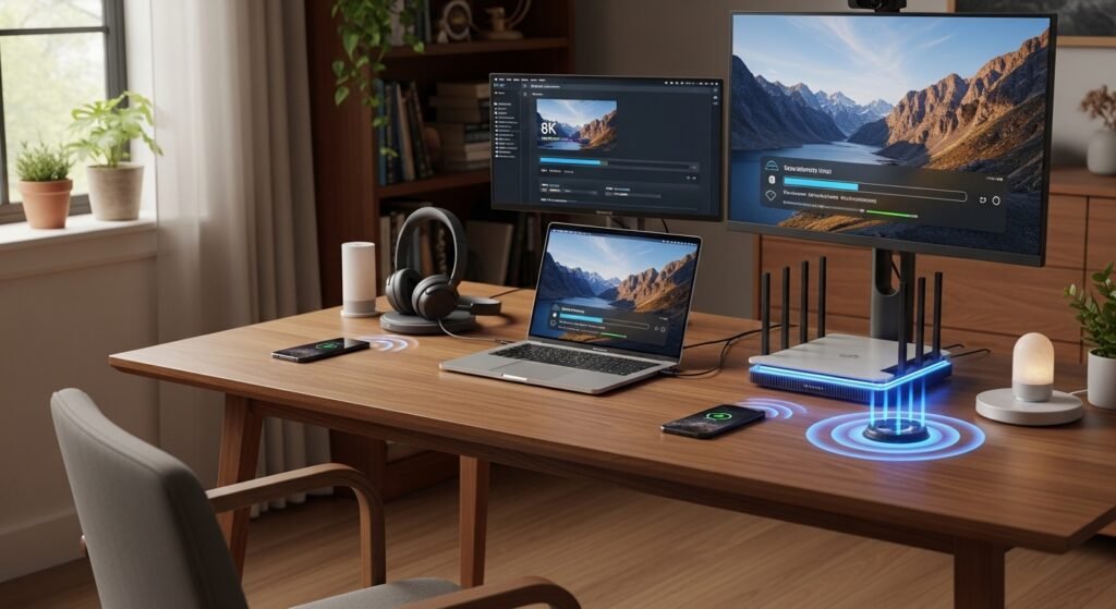 The new ports provide external drives and high-resolution monitors with speed boost through their data transfer capabilities. The system allows for instant file transfers of 4K and 8K video files which previously required several minutes to complete. The setup creates an organized area for professionals who need to connect multiple high-performance devices simultaneously.