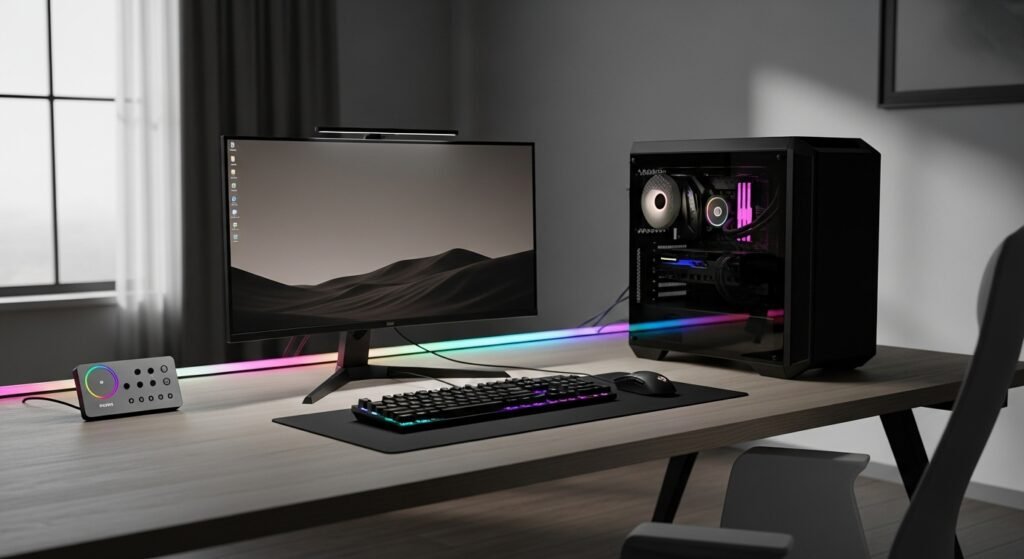 Switch off RGB controllers, LED strips, and ambient lighting systems. Such devices rely on low voltage drivers sensitive to spikes. Sync hubs connected to gaming software face firmware errors after abrupt restarts. Shutdown maintains lighting profiles and avoids controller replacement.