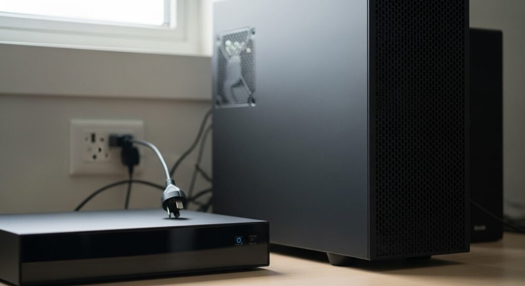 Disconnect gaming PCs or consoles at the wall socket before any other step. Power supplies hold residual charge and attract surge damage during restoration. High wattage units used for graphics cards face higher exposure. Removing power input blocks unstable current flow and preserves internal regulators and capacitors.