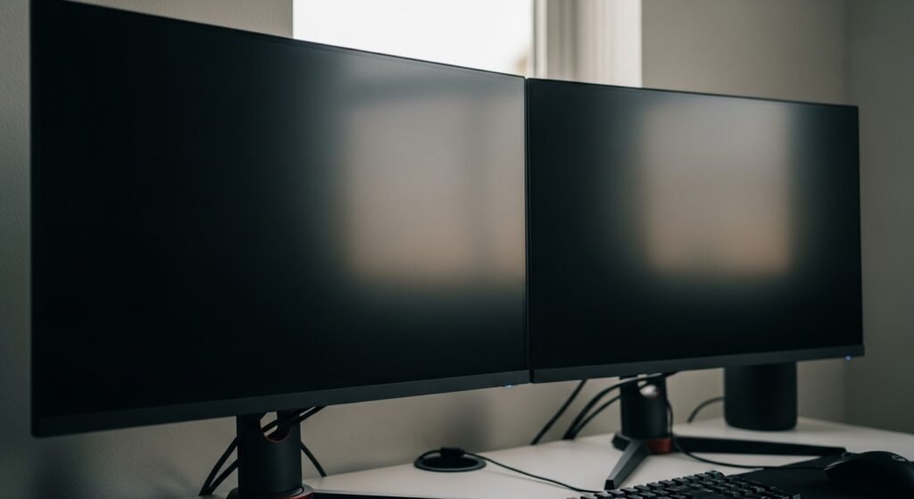 Switch off monitors immediately after gaming systems. Display control boards and backlights fail under irregular voltage. High refresh panels use tight tolerances and draw constant current. Wall disconnection prevents flicker damage, panel burn faults, and controller board failure once grid power returns.