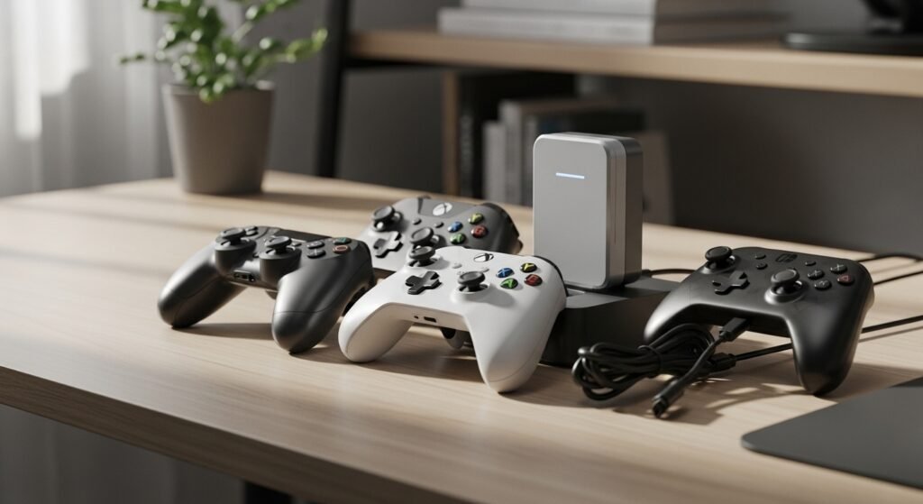 Disconnect charging docks for controllers, handhelds, and accessories. Lithium charging circuits suffer under inconsistent current. Overvoltage weakens battery lifespan and charging accuracy. Removing power protects accessories essential for gameplay and reduces replacement frequency.