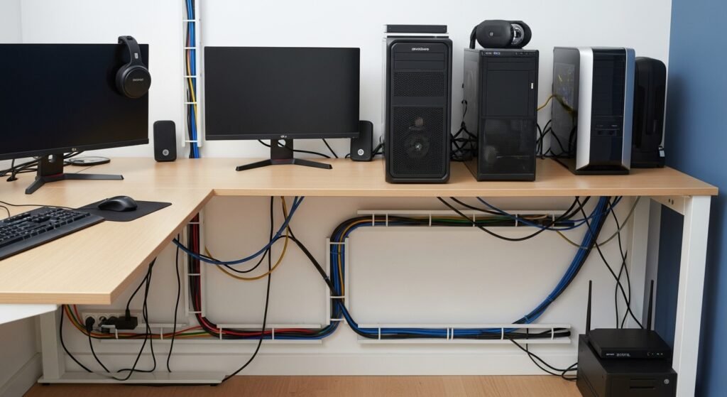 Short, heavy gauge, generator rated extension cords support gaming loads. Dedicated cords for gaming equipment prevent overload. Open routing improves cooling. Grounded plugs and protective accessories add stability. Routine inspection before sessions helps identify wear early and supports reliable power delivery during competitive gaming play.
