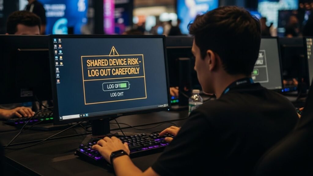 Shared systems at events or cafes raise capture risks. Logging in on public machines exposes keystrokes and saved sessions. Temporary passwords reduce long term impact. Logging out fully and avoiding browser storage protects credentials during offline play.