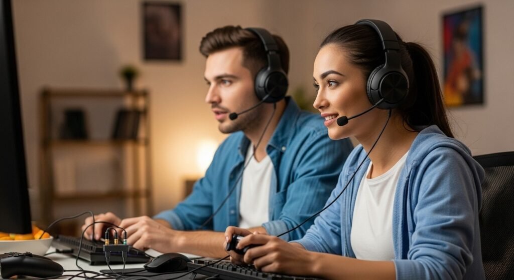 With the aid of audio splitters, it is easy to share sound. The co-op or streaming packages with the low-end ones are decent.