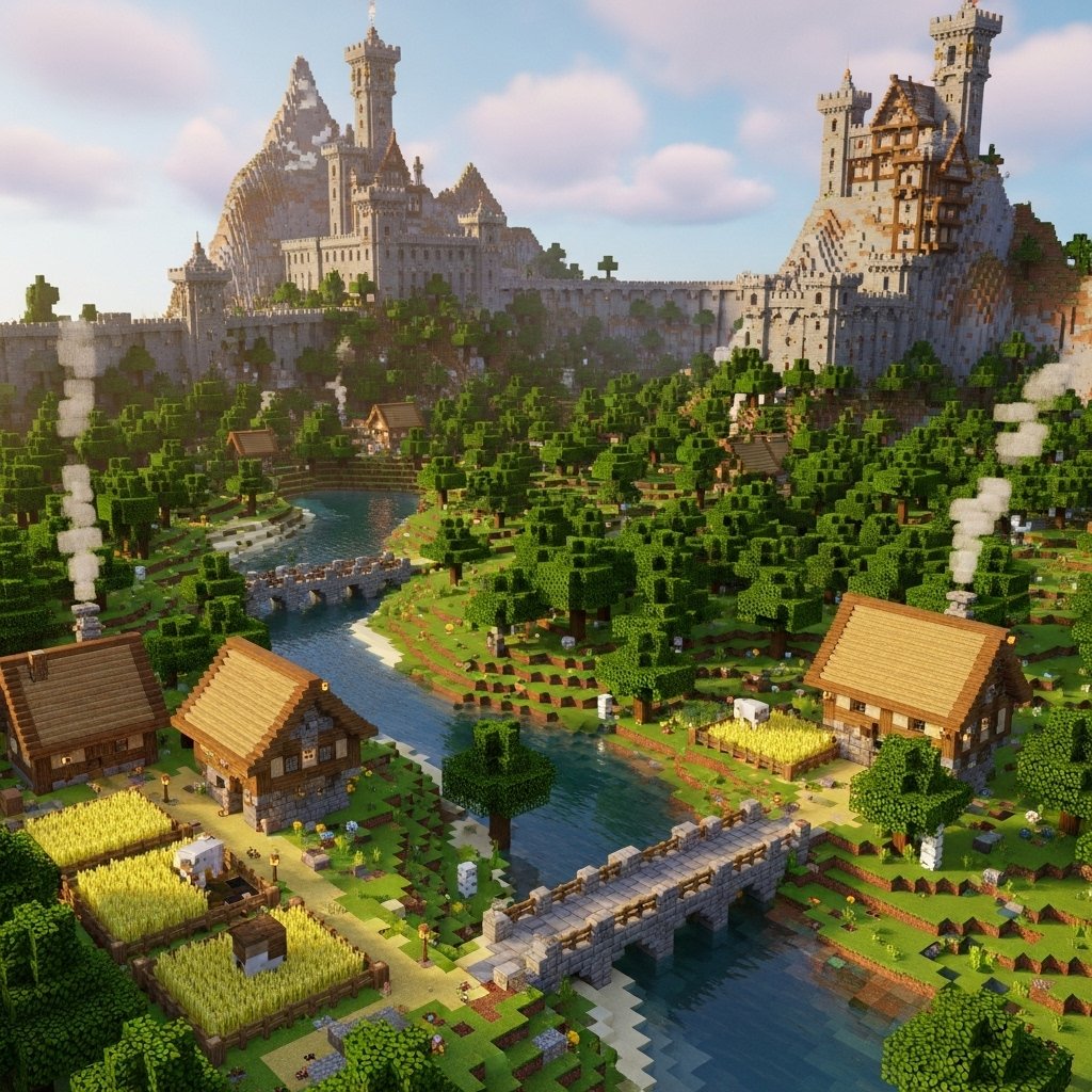 The full fantasy worlds in their entirety, with castles, villages, and landscapes, exist in survival and building modes. Such worlds are usually lore-filled and storytelling. They are nice novels to play.