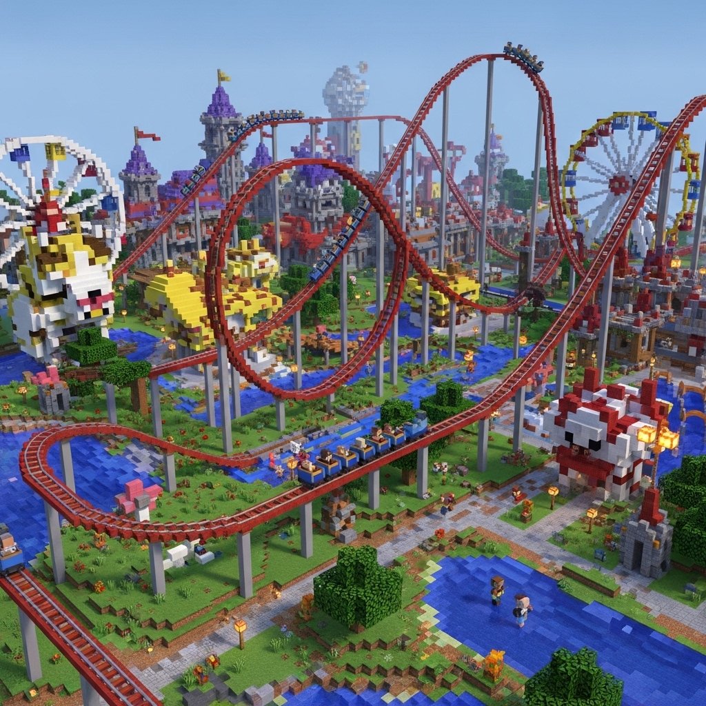 Other developers have come up with some amusement parks consisting of roller coasters and games. By the use of redstone mechanics, rides are also functional. Minecraft is a theme park due to these constructions.