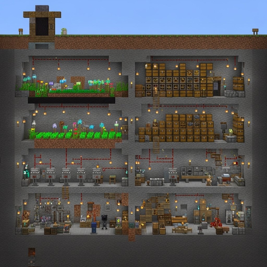 Automated farms are composed of complex redstone. These are efficient and time saving systems. They cannot be lacking in an advanced survival world.