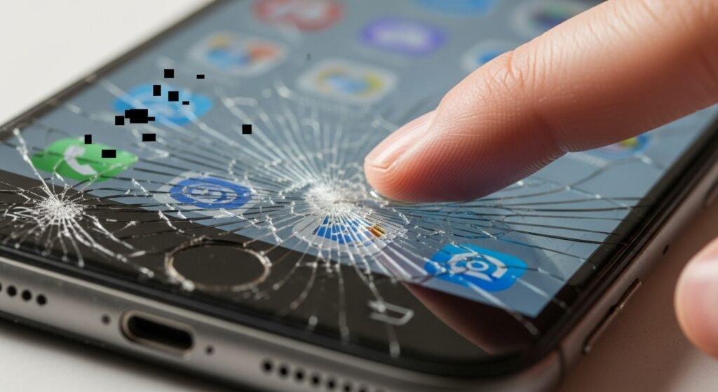 Touch response is irregular. Dead shots are displayed. Cracks worsen over time. The usability and viewing is highly impaired.