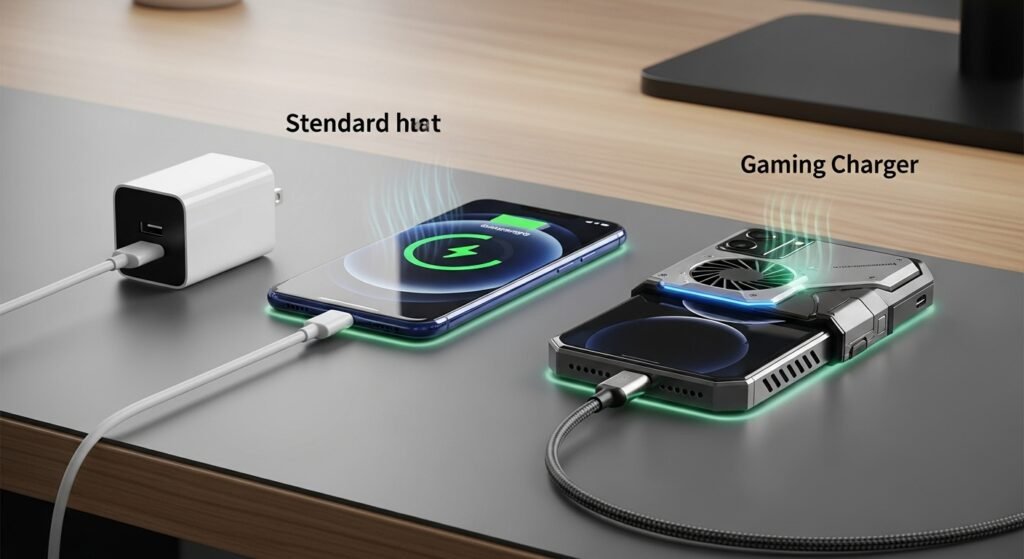 Fast chargers deliver high current levels. Frequent overnight fast charging raises heat exposure. Standard chargers supply slower, cooler charging cycles. For overnight use, slower charging supports battery health without affecting next day gaming readiness.