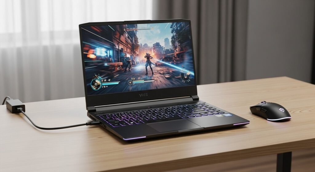 A battery or PD marking indicates charging support. Wattage varies by device. Gaming laptops require higher wattage for full performance. Using a low power port throttles CPU and GPU output during demanding sessions.