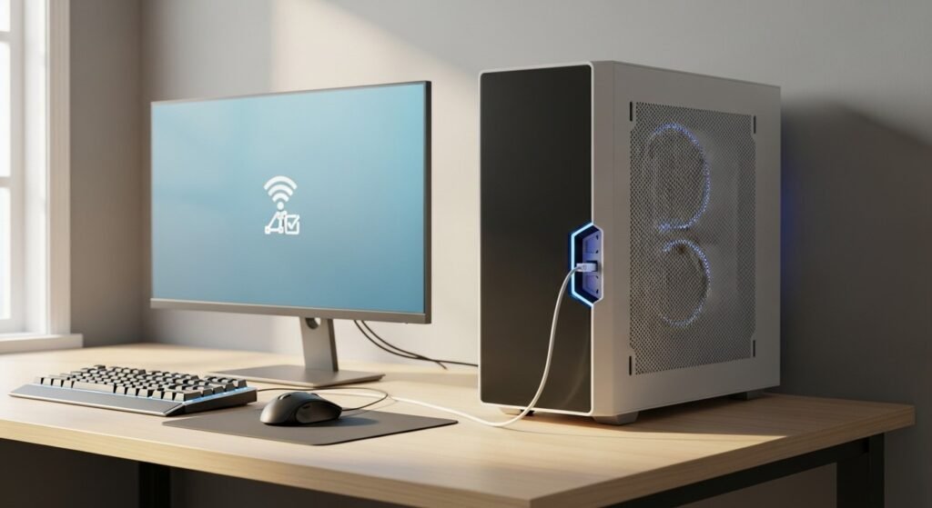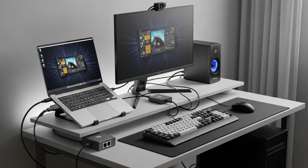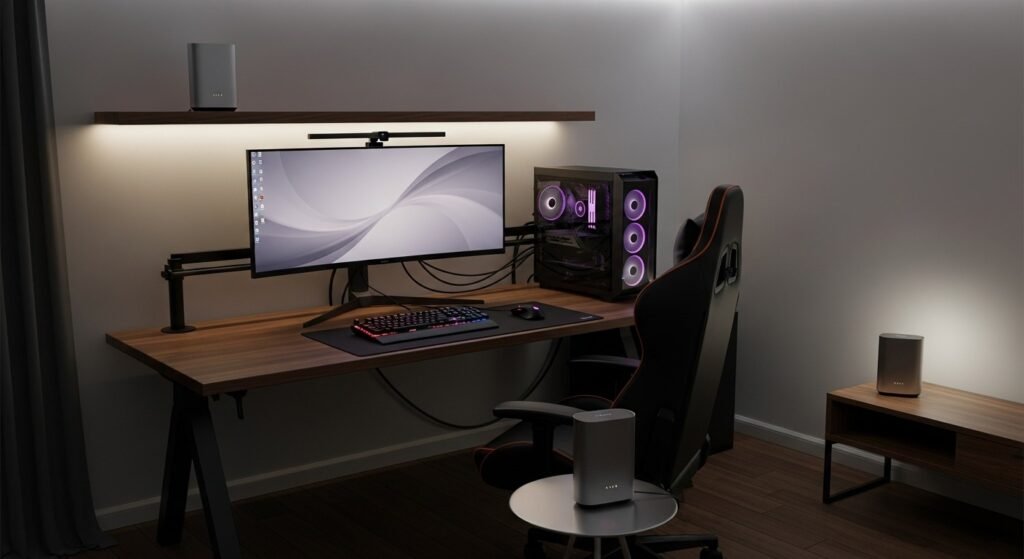 A compact setup uses powerline adapters combined with USB to Ethernet dongles. Laptops and consoles without Ethernet ports benefit from this method. The connection avoids Wi Fi interference from nearby devices. This option suits rented spaces where permanent changes stay restricted.